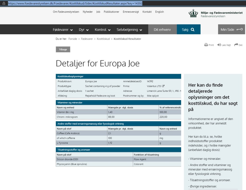 https://www.foedevarestyrelsen.dk/Foedevarer/Kosttilskud/Sider/KosttilskudResultater.aspx?key=14392